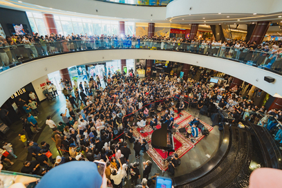 ‘Konser’ dadakan ini disambut meriah antusias oleh pengunjung mal, yang memadati area Main Atrium Street Gallery PIM, hingga terlihat di beberapa lantai di bagian atas.